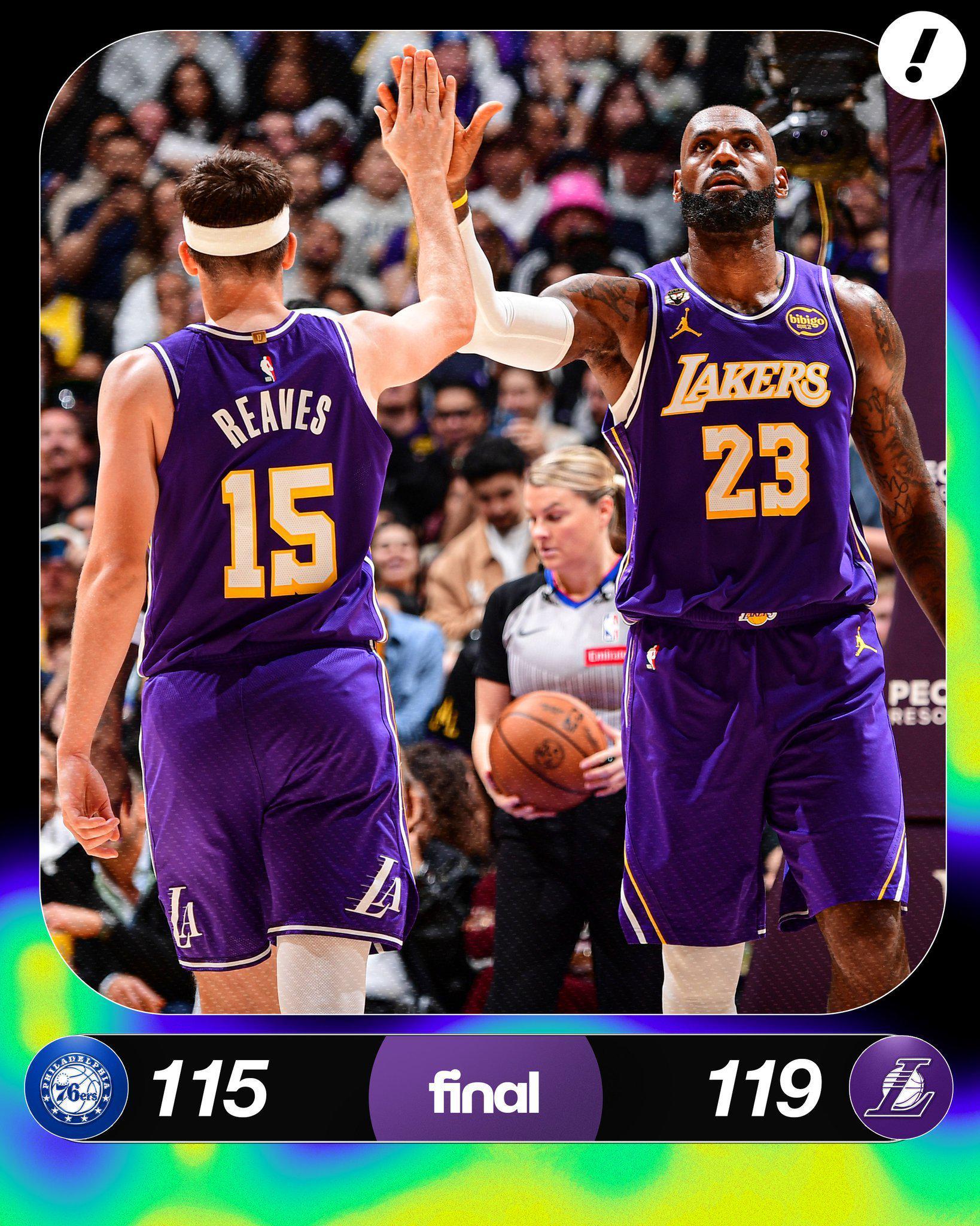 想想看吧,一个正在打出MVP水准的东契奇,一个完全是全明星水准的里夫斯,再加上联盟第一三分射手肯纳德,这样的湖人在进攻端已经足够爆表,更何况他们还有一个老而弥坚的詹姆斯,本场比赛,詹姆斯的状态其实并不好,全场出战37分钟,投篮17中7,得到17分4篮板10助攻,出现8失误。
