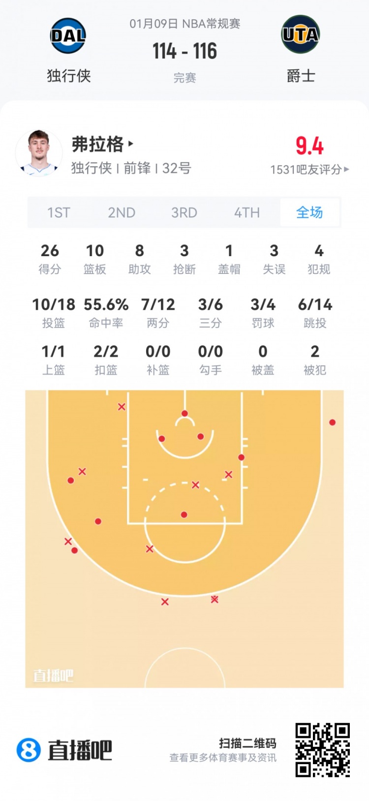 足球直播-【菜鸟】绝代双骄!弗拉格26分10板8助3断1帽 克尼佩尔18分8板3助